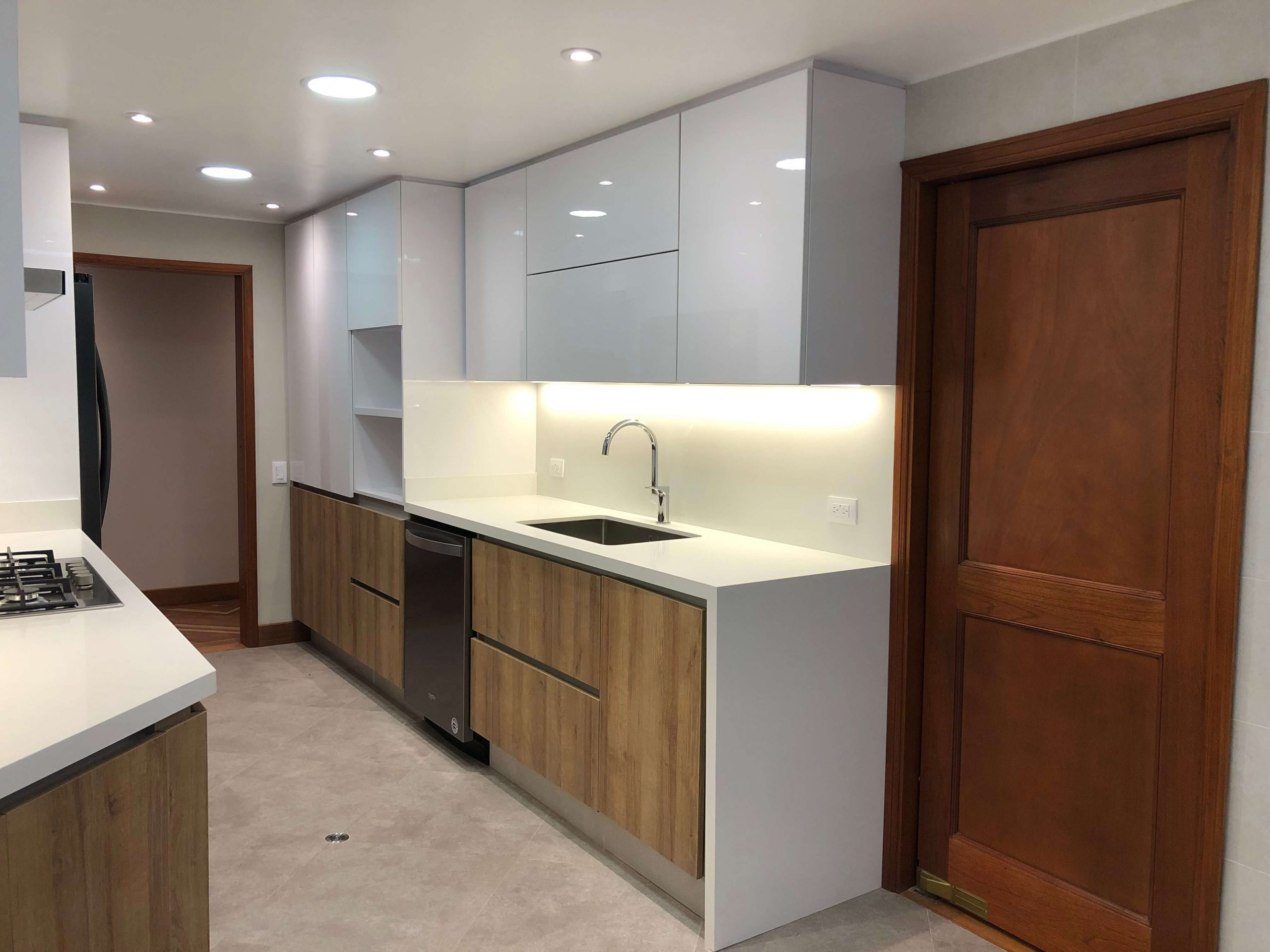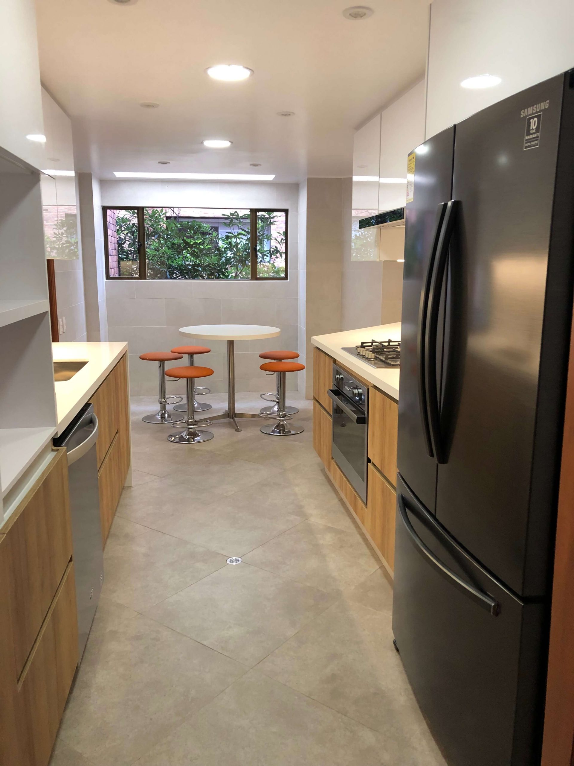 Remodelación de Apartamento en la Calle 77 en el año 2021. La propuesta se basó en actualizar los espacios, sin perder el toque y la carpintería clásica original del apartamento y mejorar el espacio de la cocina, sin abrirla al comedor.