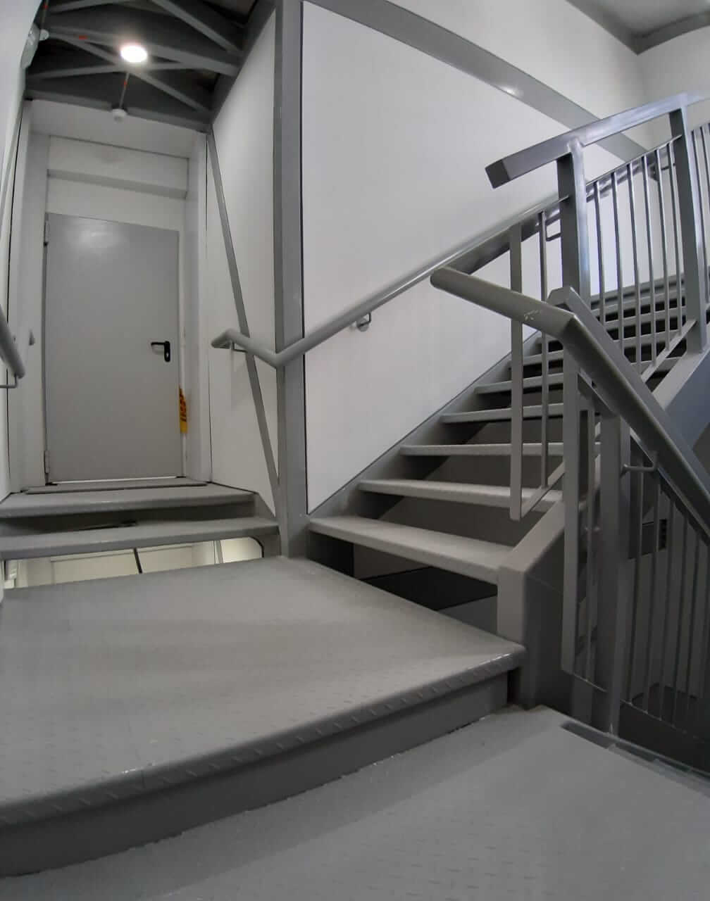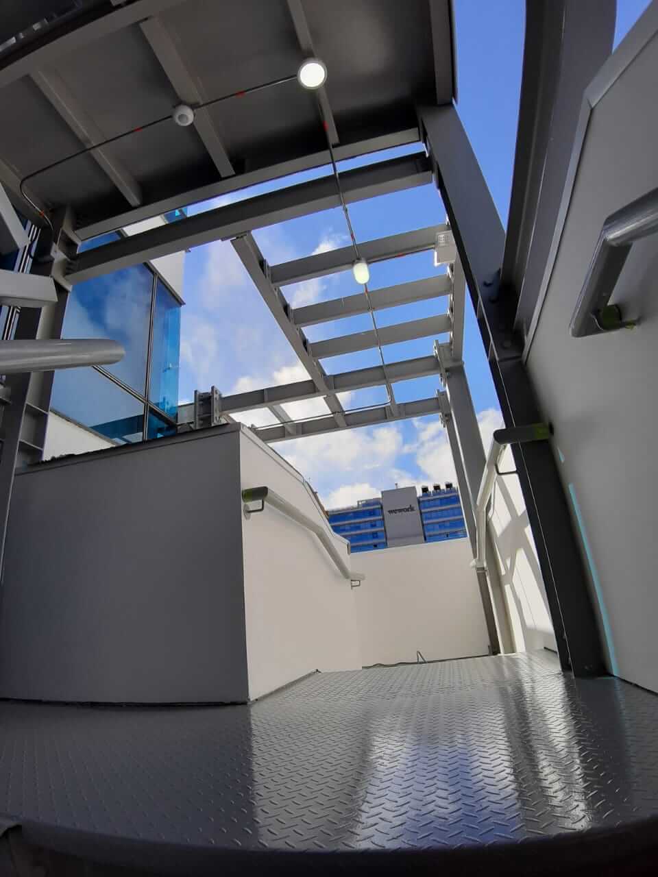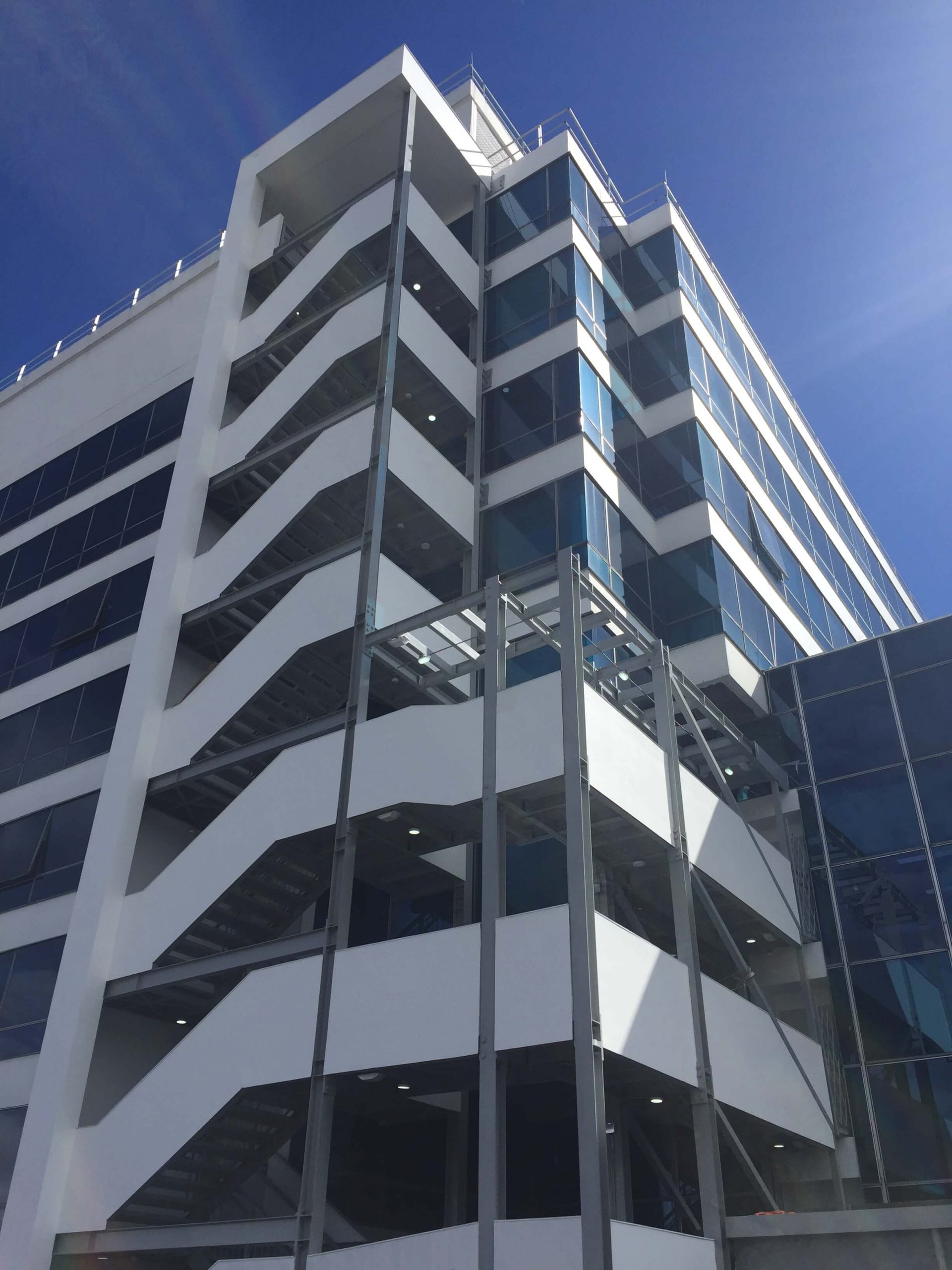 Diseño y Construcción por Ignacio Samper Llinás para la firma Samper Arenas Umaña, del sistema de evacuación de emergencia del Edificio terminado en 2019 para 2 torres de 10 y 15 pisos de oficinas. Proyecto de estructura metálica de escaleras exteriores con salidas protegidas y de protección ignífuga.