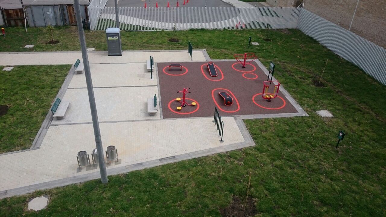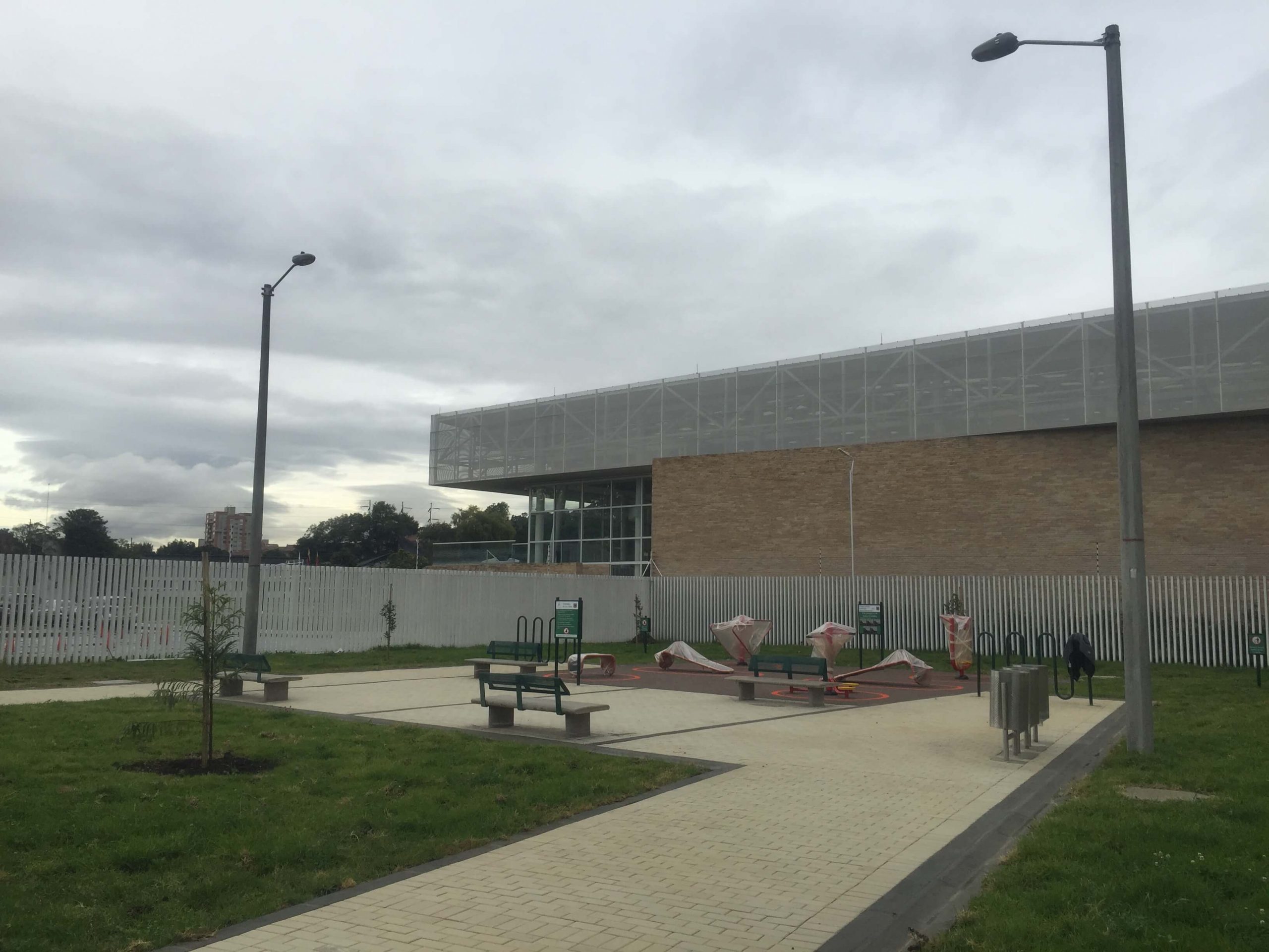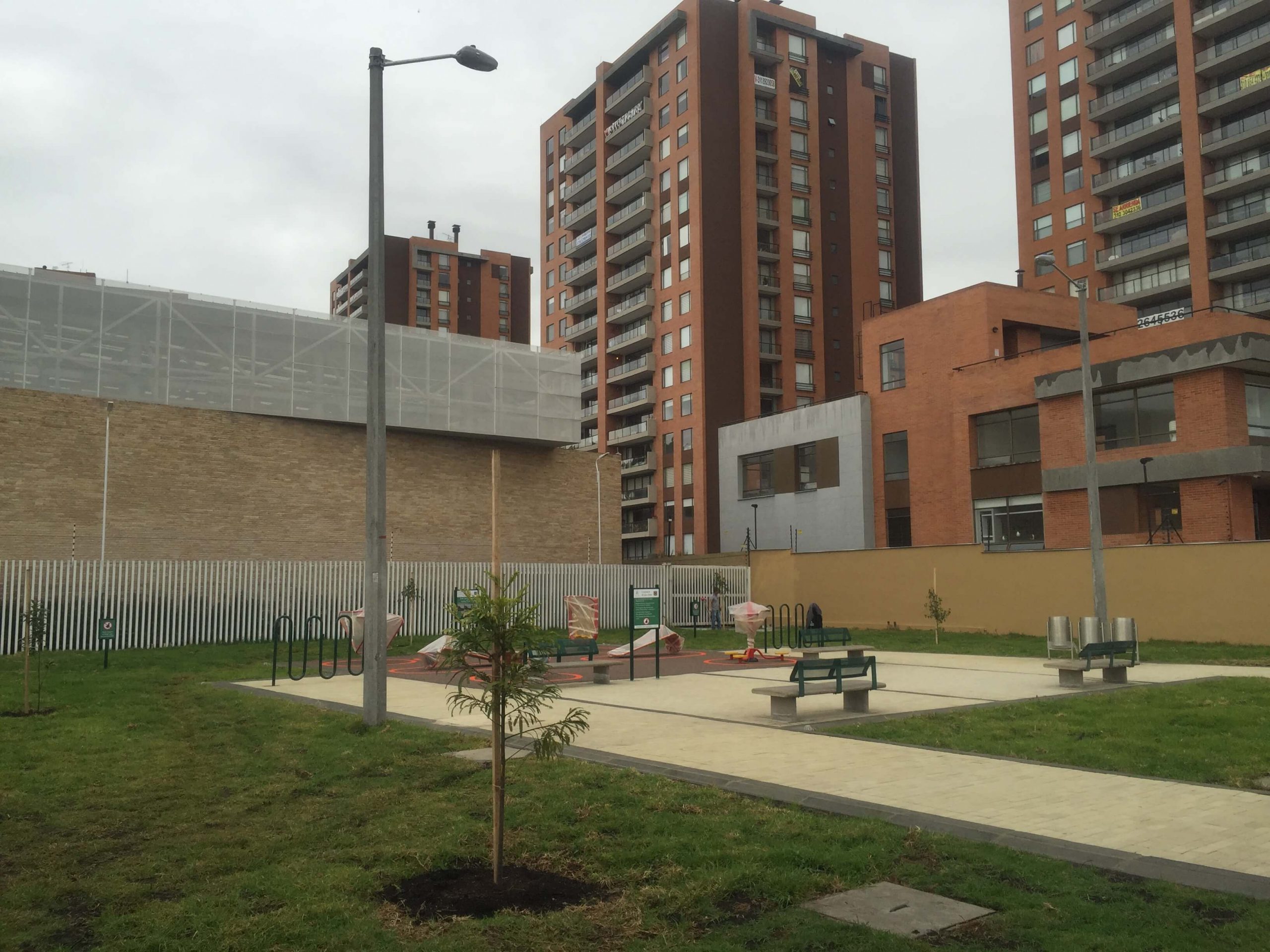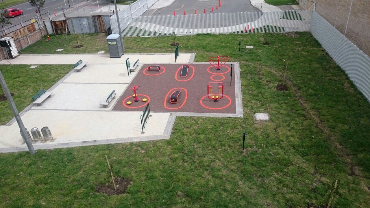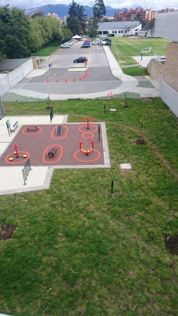 Construcción de interiorismo por Ignacio Samper Llinás para la firma Samper Arenas Umaña, SAU para el parque de Cesión de 753m2, del Colegio Fundación Nuevo Marymount.